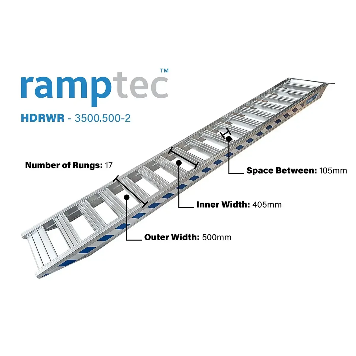 2 Tonne 3.5 Metre X 500mm Aluminium Loading Ramps Heavy Duty Rubber Track Use