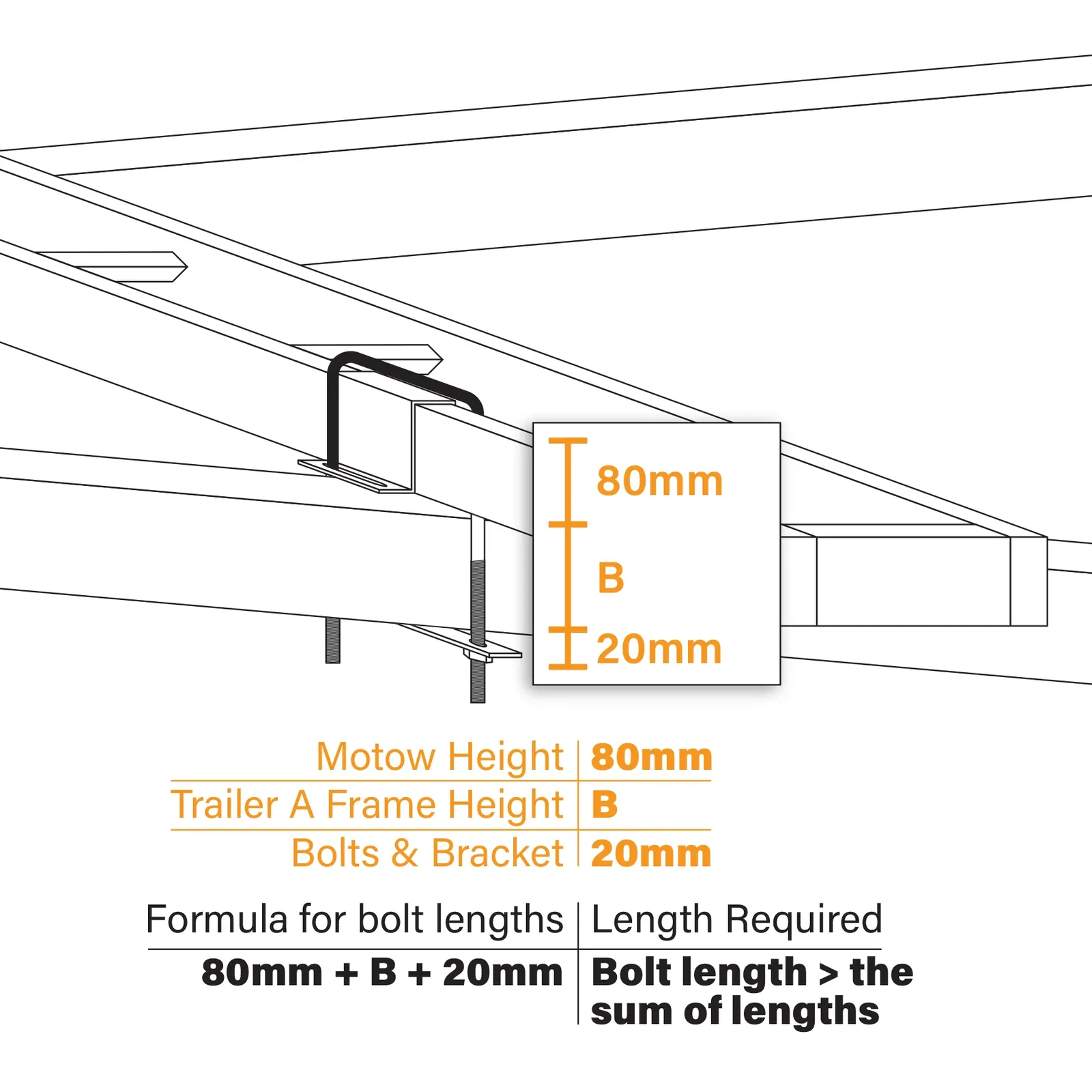 A-Frame mounted Mo-Tow 1.9M Motorcycle / Ebike Bike Carrier - 1900mm 180mm Ubolts A-Frame mounted Mo-Tow 1.9M Motorcycle / Ebike Bike Carrier - 1900mm 180mm Ubolts