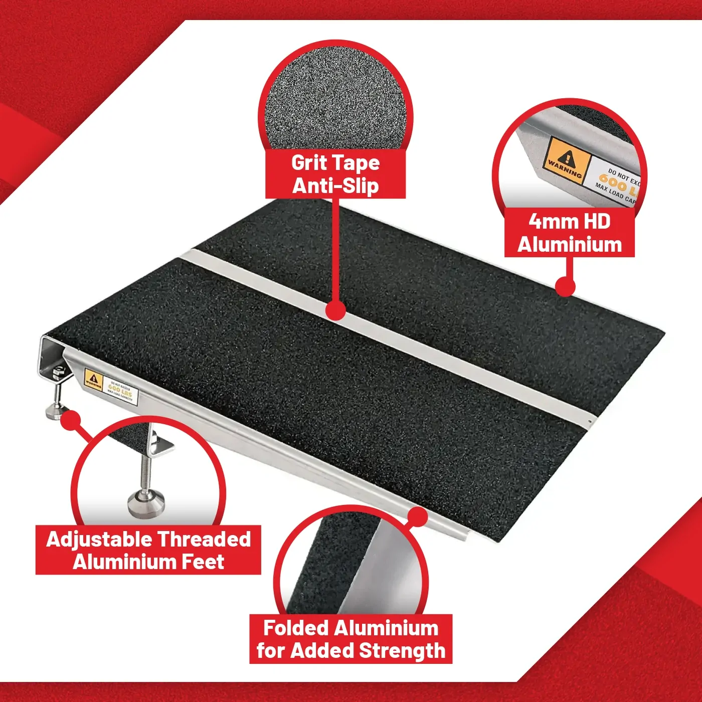 Ramptec Aluminium Adjustable Threshold Ramp 76Cm X 76Cm 272Kg Capacity - With Grit Tape