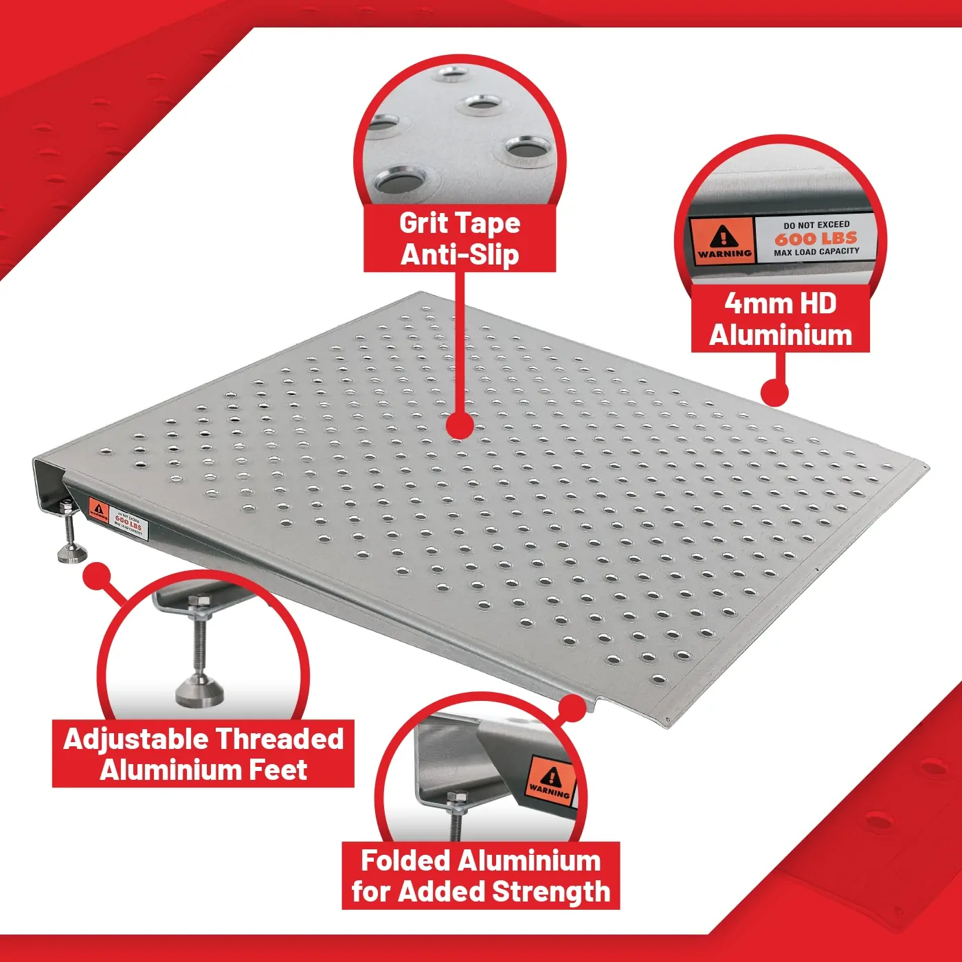 Ramptec Aluminium Adjustable Threshold Ramp 90Cm X 90Cm 272Kg Capacity