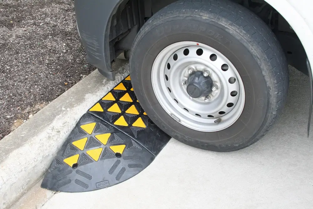 Made of high density and recycled rubber, the Barrier Group High-Vis Rubber Kerb Ramps have sloped and rounded ends that allow vehicles to access the ramp from any angle. Owing to their modular nature, they are easy to set-up and disassemble. They can be bolted to the ground for a permanent solution or just parked without bolts as a temporary solution.