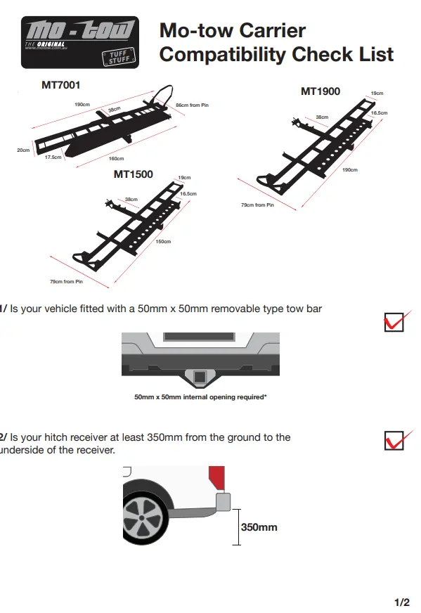 The mo-tow™ is designed for use on medium to large vehicles and is rated to 180kgs (400lbs) carrying capacity.
