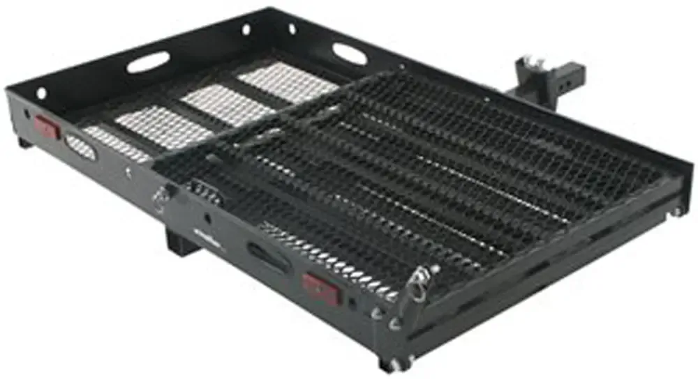 The carrier features an integrated 2 section ramp which folds up and out into 3 different positions.