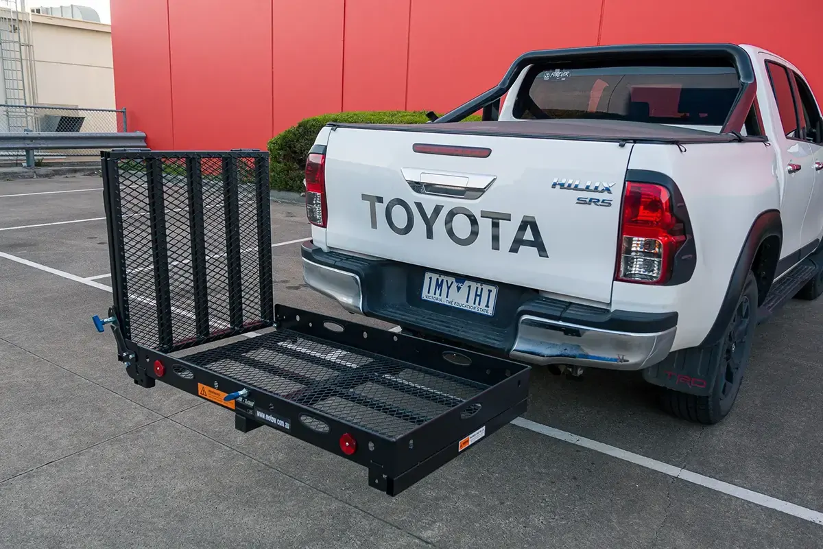 Supporting the carrier is a heavy duty 2" x 2"" (50 x 50 mm) hitch tube and an anti tilt bracket which features 4 bolts and a safety pin to allow the hitch tube to be removed from the carrier.