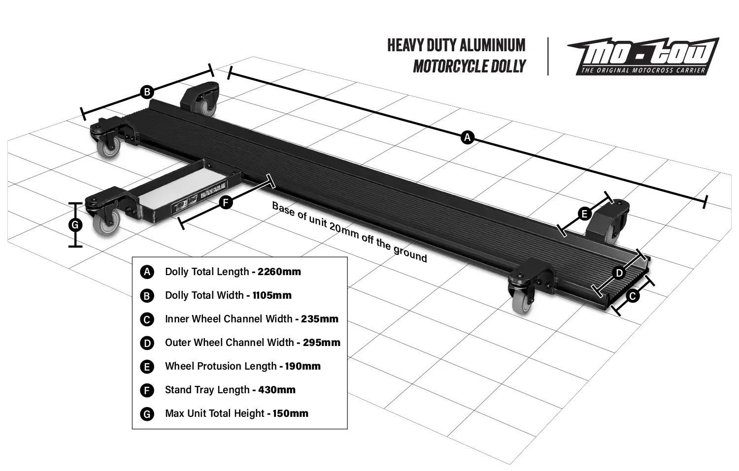 Motow - Heavy Duty Aluminium Motorcycle Dolly - Capacity 680KG- Black Edition