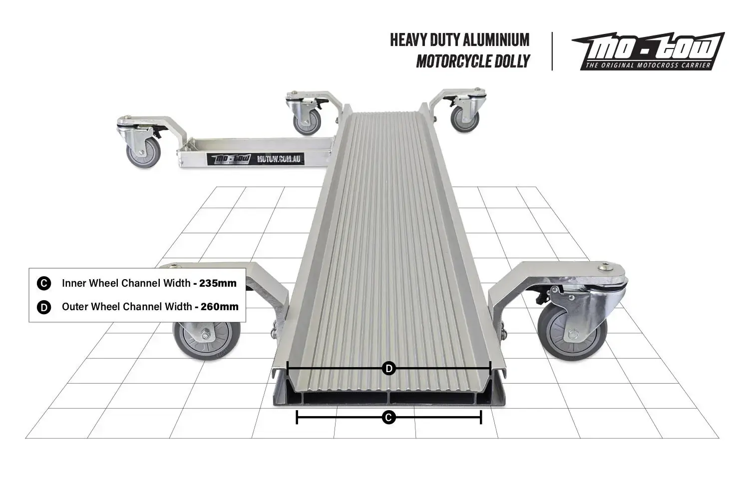 The extruded aluminium surface provides added traction while loaded and unloaded your motorcycle.