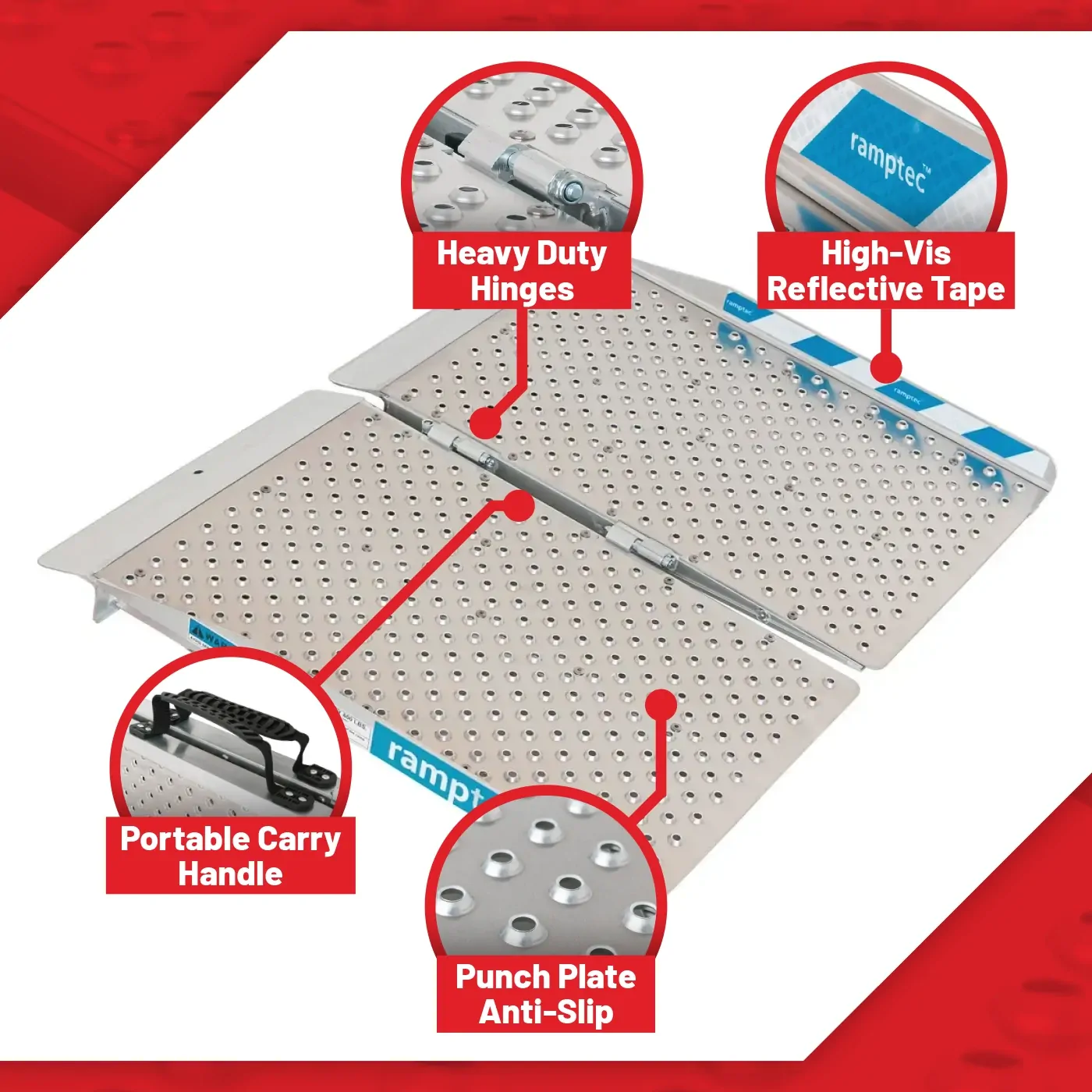 Ramptec 2 Foot Aluminium Wheelchair / Scooter Ramp Portable Folding - Punch Plate
